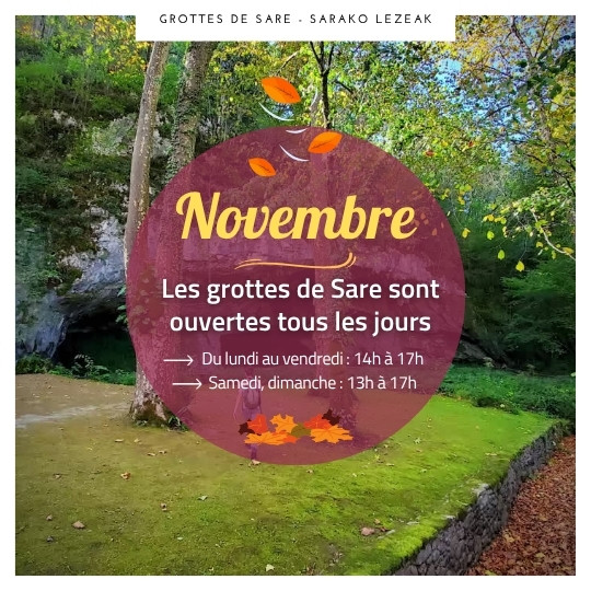 Les grottes de Sare sont ouvertes tous les jours jusqu'au 4 Janvier 2026 (hormis les 24, 25 décembre et 1er janvier) :