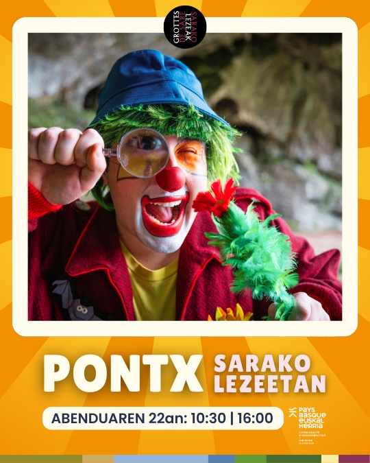 Le 22 décembre, Pontx le clown vous donne rendez-vous pour une aventure extraordinaire au coeur de la grotte Lezea... Une proposition originale, parfaite pour vivre un moment inoubliable en famille avant les fêtes !